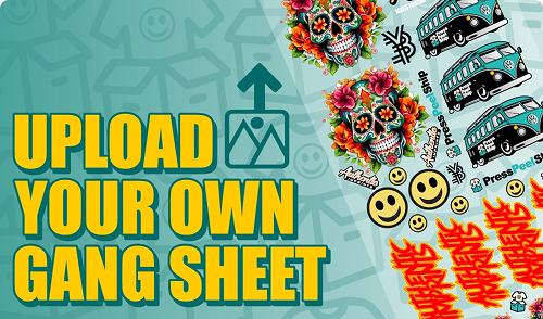 Use our gang sheet builder or upload a press-ready file, whichever works best for you. Lay out your designs exactly how you want them with no extra software required.